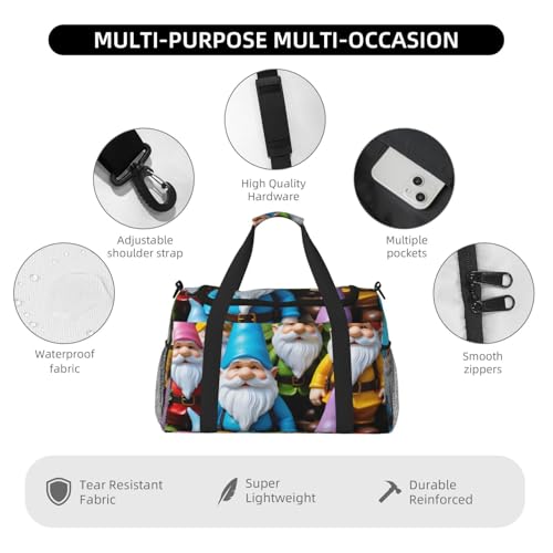 Colorful Gnomes Print Travel Duffle Bag - Foldable Personal Item Travel Bag for Women & Men,Carry-On Convertible Crossbody Tote Bags with Adjustable Shoulder Strap & Pockets 13x10.2x19.7 in 1