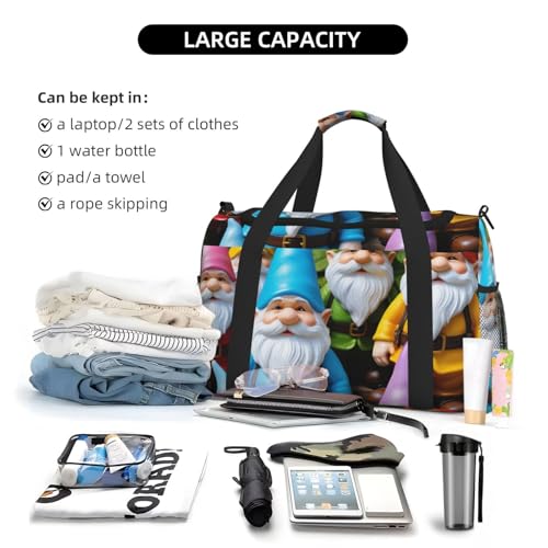 HOT ! Colorful Gnomes Print Travel Duffle Bag - Foldable Personal Item Travel Bag for Women & Men,Carry-On Convertible Crossbody Tote Bags with Adjustable Shoulder Strap & Pockets 13x10.2x19.7 in