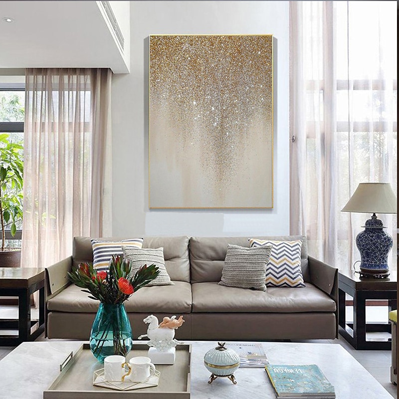 More information about Golden Silver Starry Sky Abstract Oil Painting 100% Handmade Hand Painted Wall Art On Canvas Home Decoration Decor Rolled Canvas No Frame Unstretched