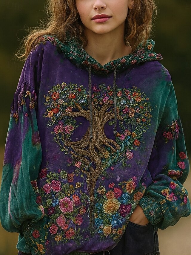 More information about Women's 3D Print Vintage Boho Hoodie Patchwork Hoodie Sweatshirt Floral Pullover Sweatshirt Elegant Warm Active Long Sleeve Hooded Street Dailywear Casual Drawstring Print Blue Spring Fall Winter
