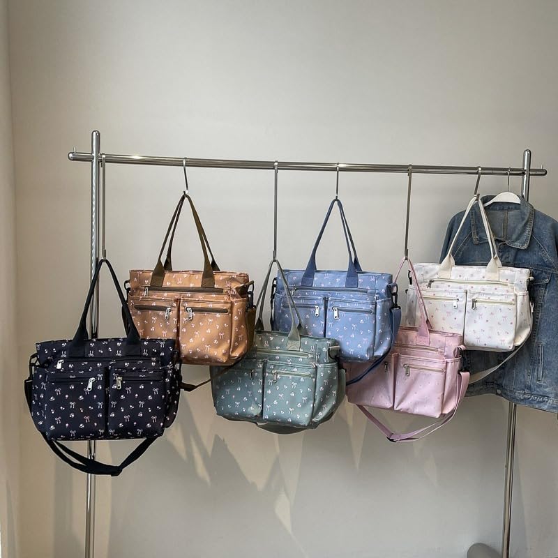 HOT ! Women’s Bow Print Tote Bag With Multi Pocket,Cute Kawaii Crossbody Bag,Large Capacity Bow Shoulder Purse Handbag Bag