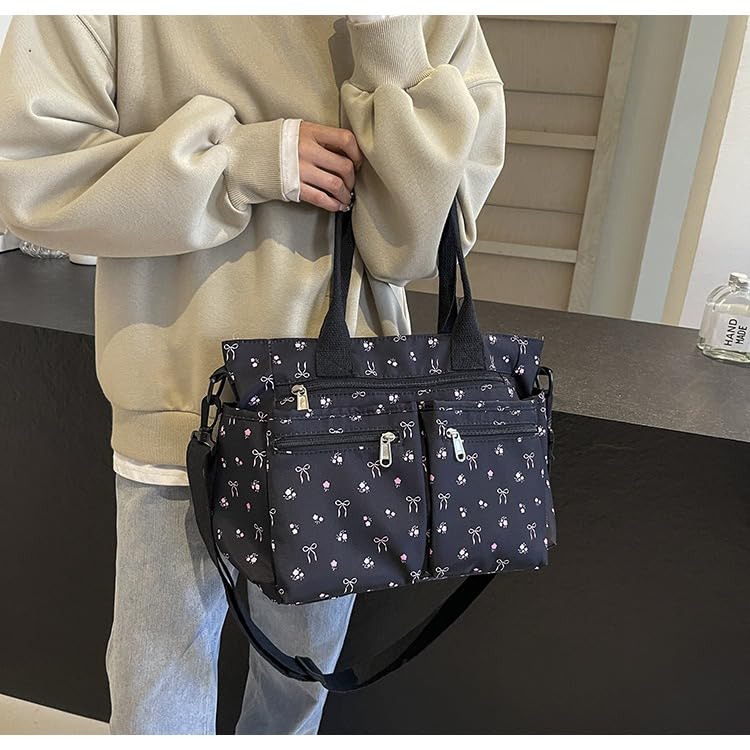 Women’s Bow Print Tote Bag With Multi Pocket,Cute Kawaii Crossbody Bag,Large Capacity Bow Shoulder Purse Handbag Bag 1