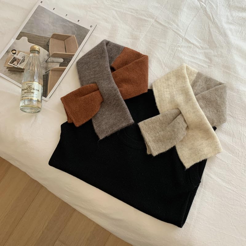 Knit Triangle Scarf Pull Through Scarf for Women Short Keyhole Scarf Y2k Old Money Aesthetic Accessories 6