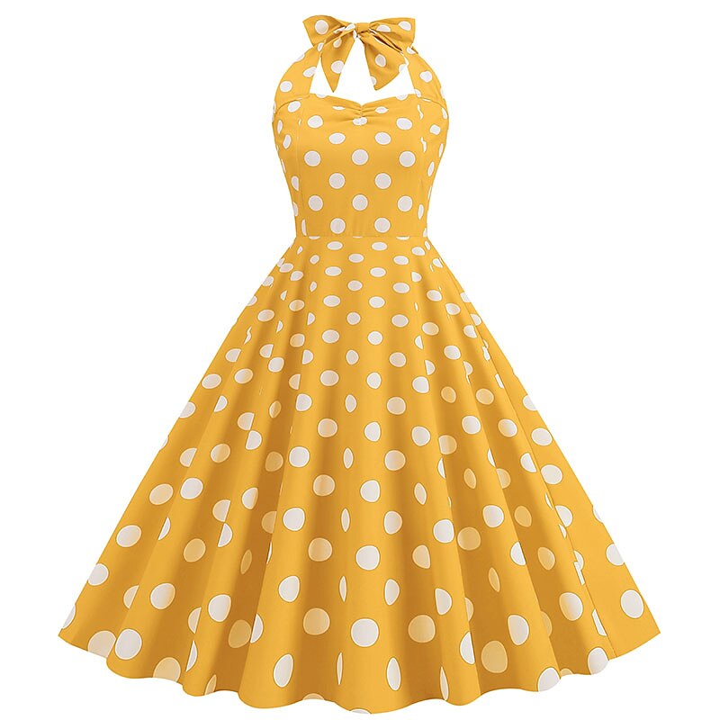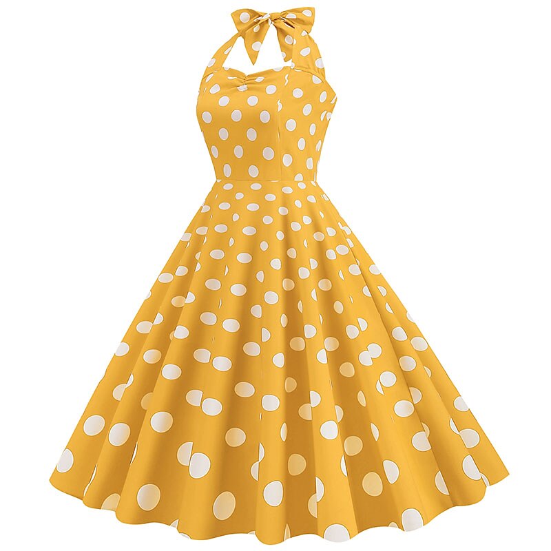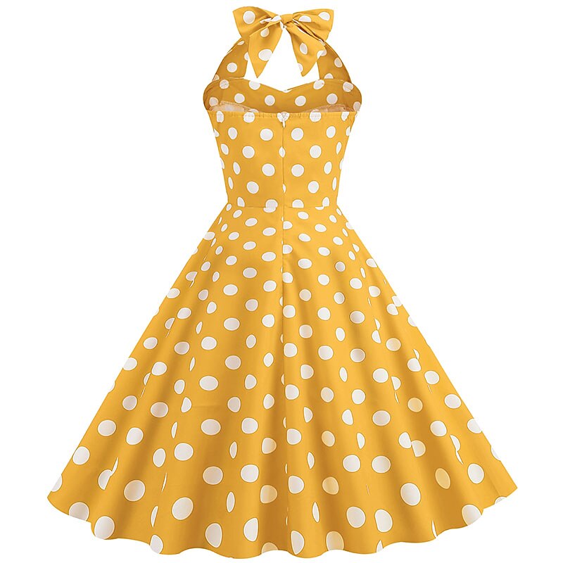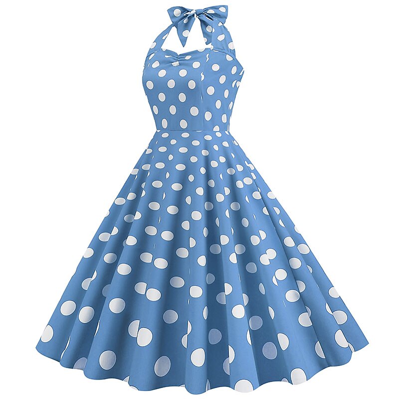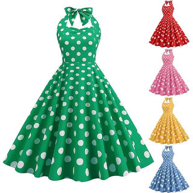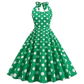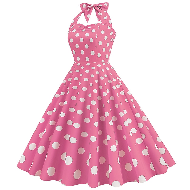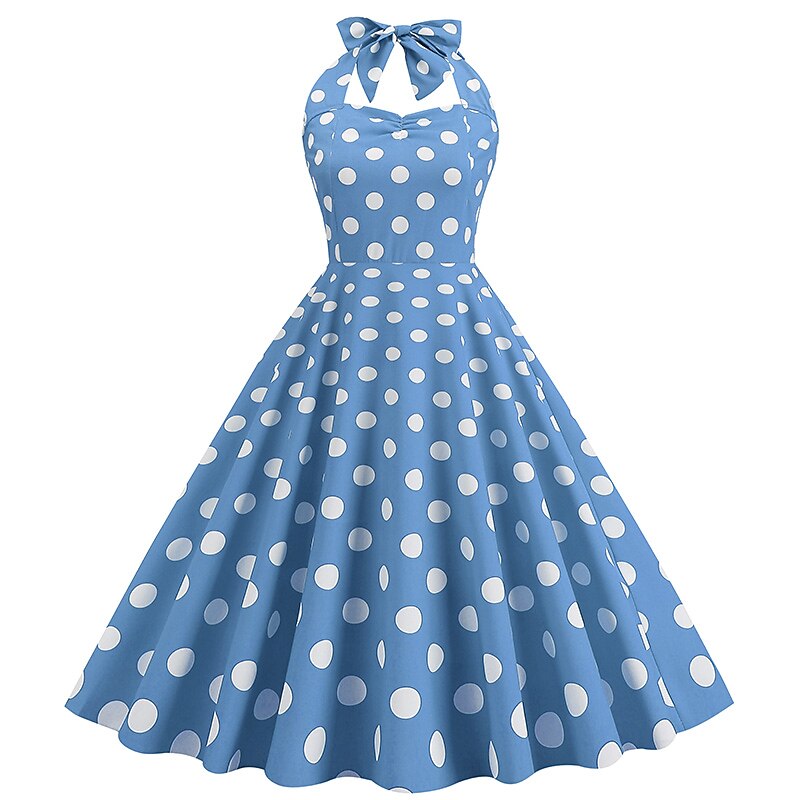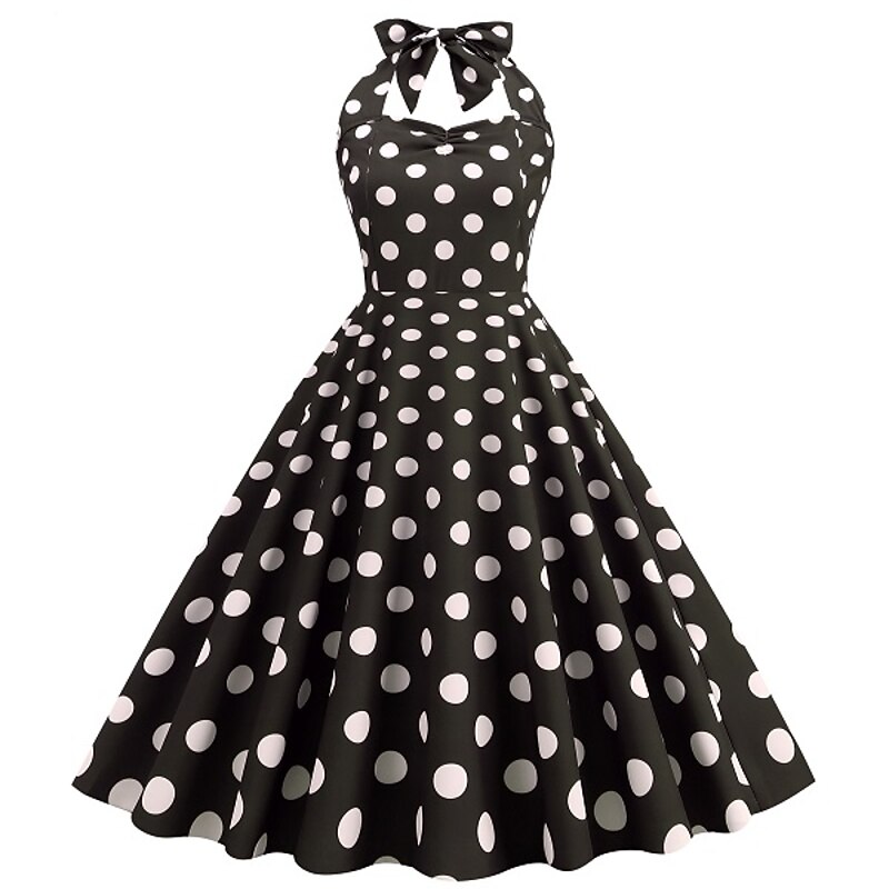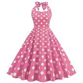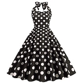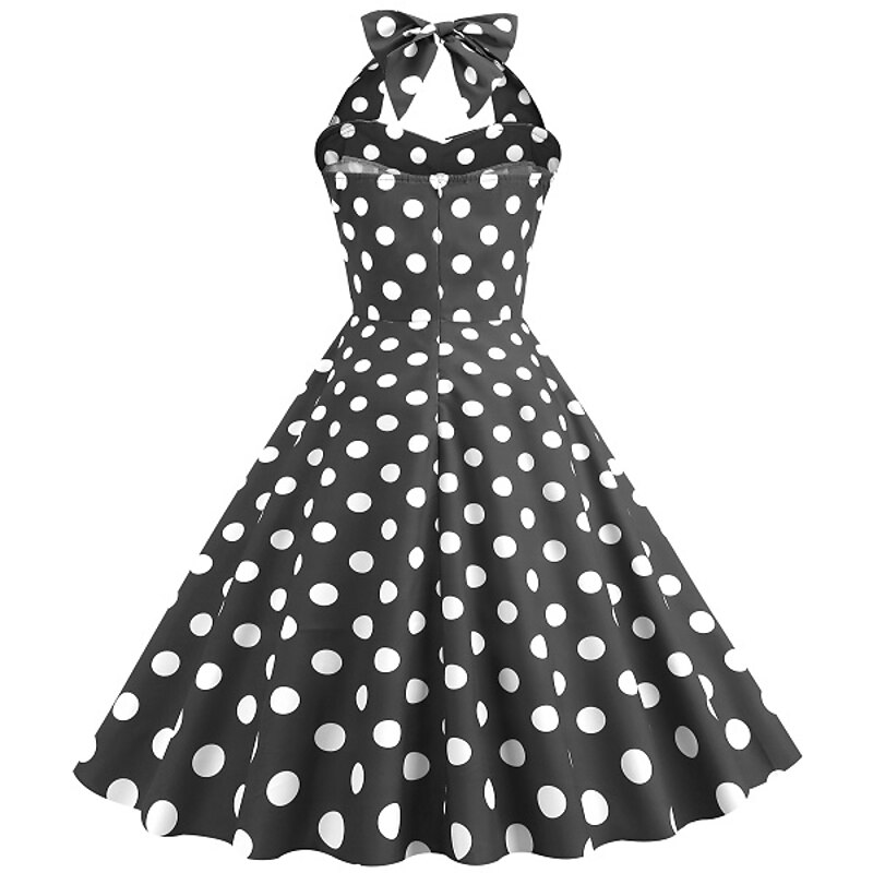 More information about 1950s Grease Outfits Open Back Cocktail Dress Midi Dress JSK / Jumper Skirt A-Line Dress Flounced Polka Dot Round Dots Printing Ball Gown V Neck Halter Neck Fancy Dress Women's Valentine's Day