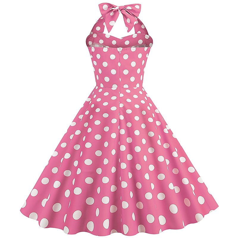 1950s Grease Outfits Open Back Cocktail Dress Midi Dress JSK / Jumper Skirt A-Line Dress Flounced Polka Dot Round Dots Printing Ball Gown V Neck Halter Neck Fancy Dress Women's Valentine's Day 11
