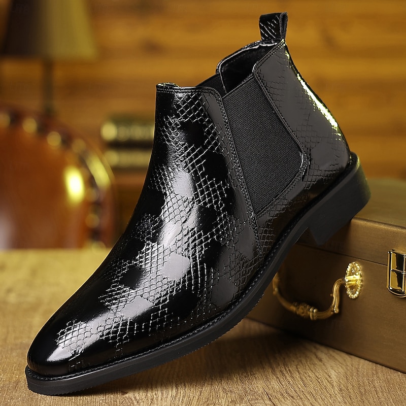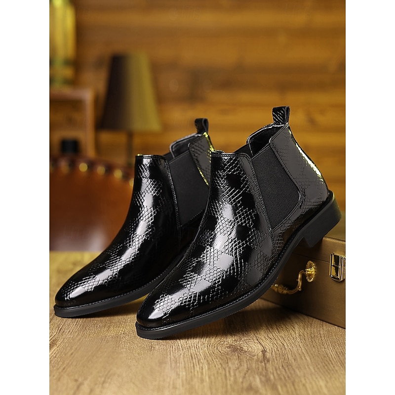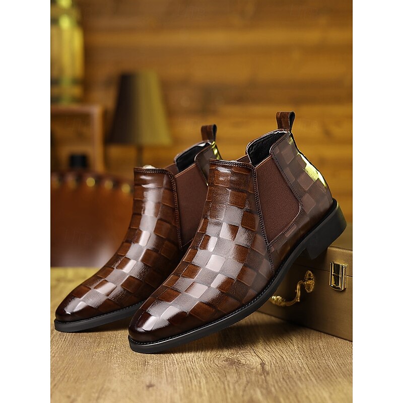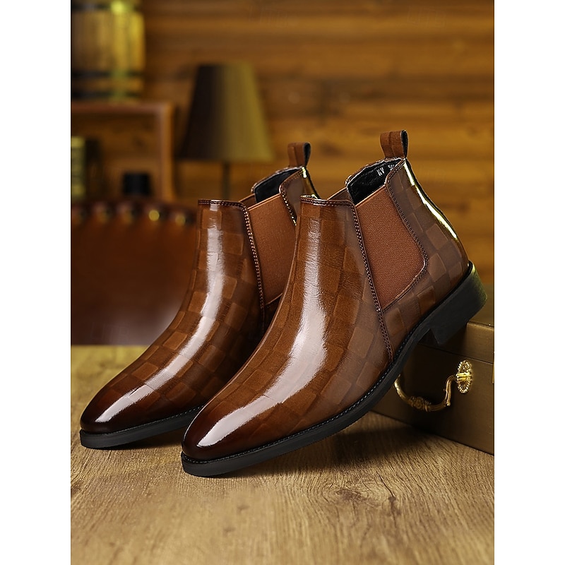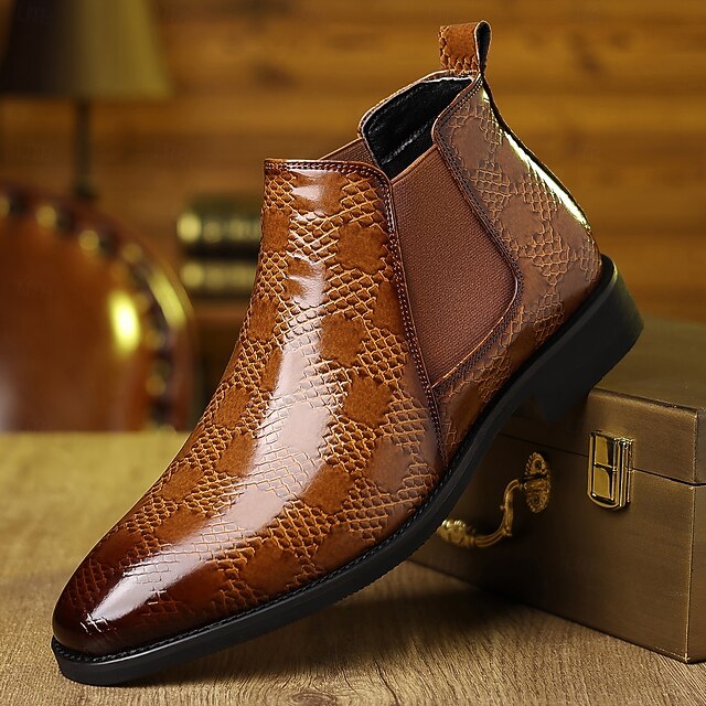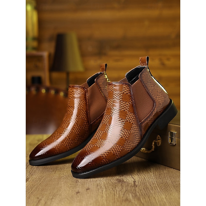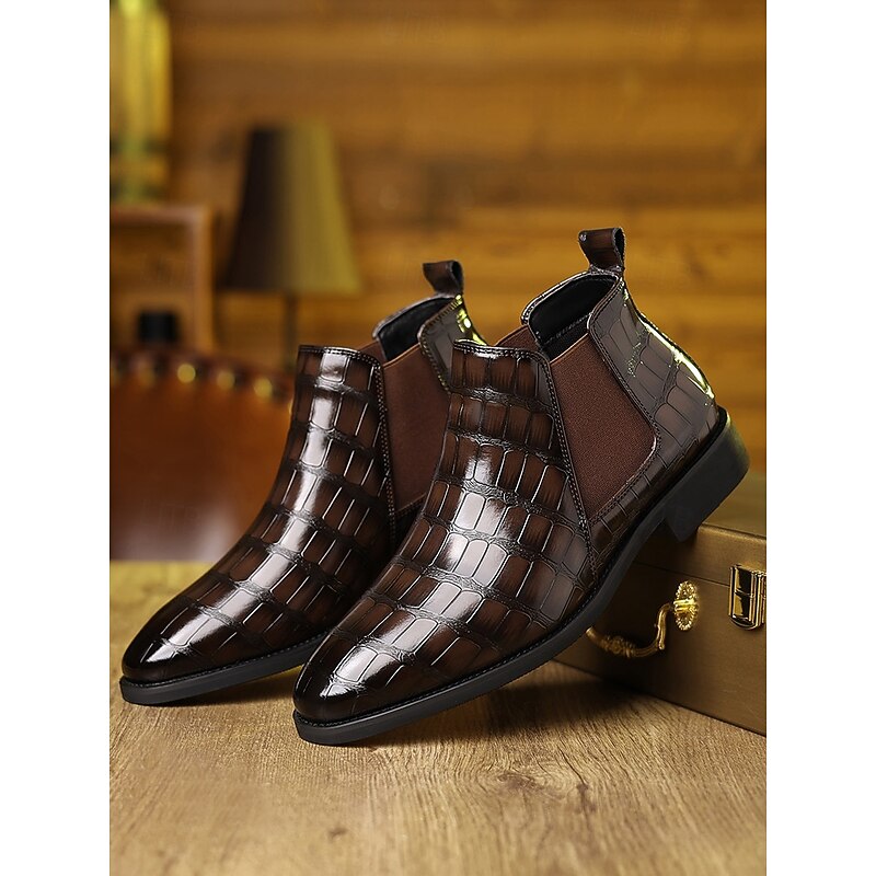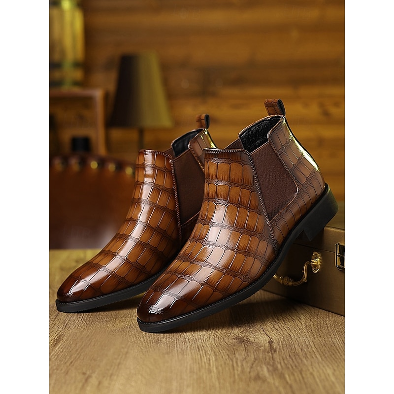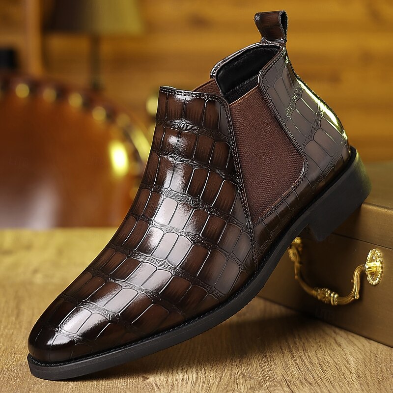 More information about Men's Brown Crocodile Embossed Chelsea Boots – Elegant Slip-On Dress Shoes for Office, Dinner Parties and Formal Occasions
