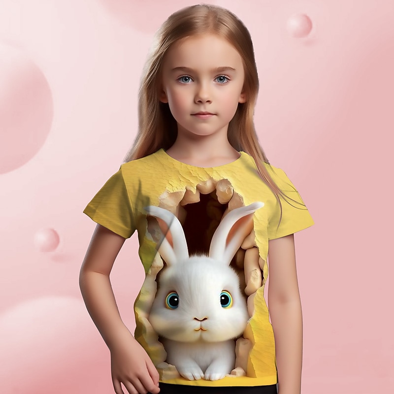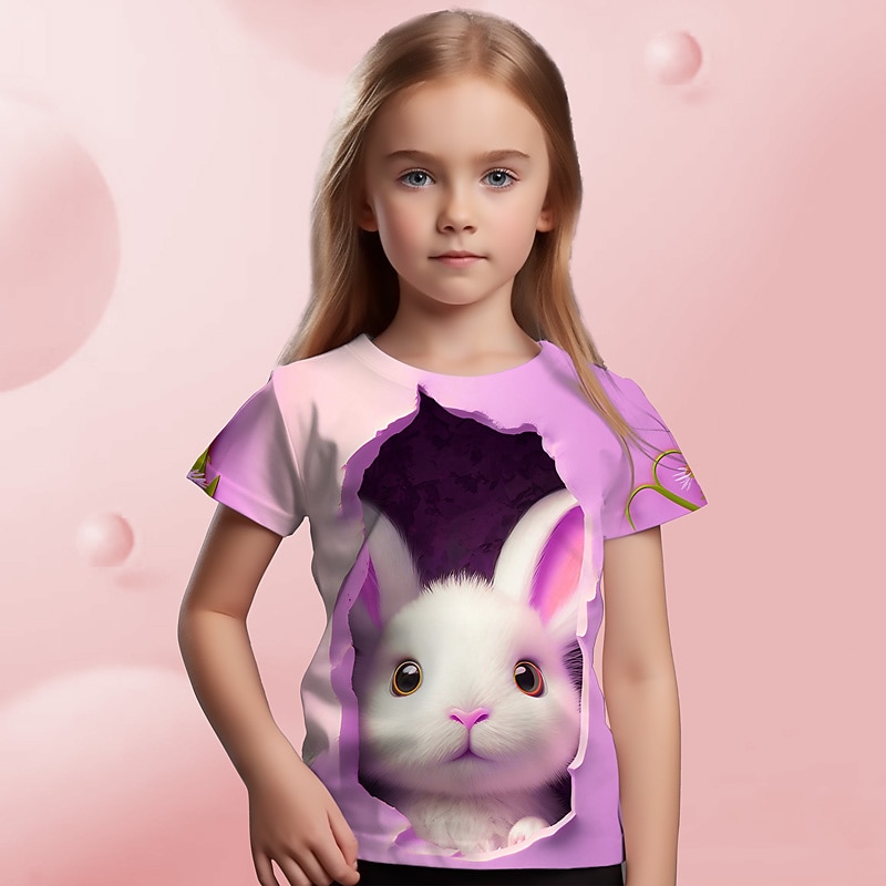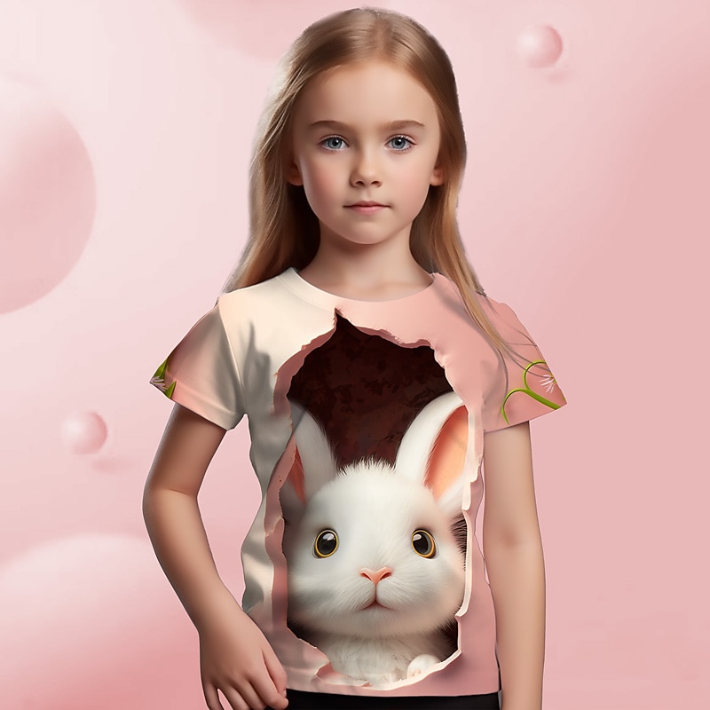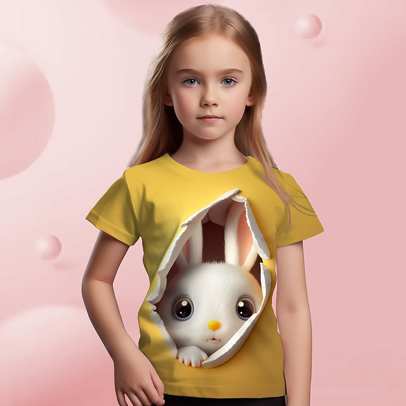 More information about Easter Girls' 3D Graphic Cartoon Rabbit T shirt Tee Short Sleeve 3D Print Summer Spring Active Fashion Cute Kids 3-12 Years Outdoor Casual Daily Regular Fit