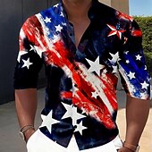 More information about American Independence Day Men's American Flag Patriotic Button Up Shirt Long Sleeve Casual Vacation Daily Summer Spring & Fall Grandad Collar Band Collar 3D Print Black