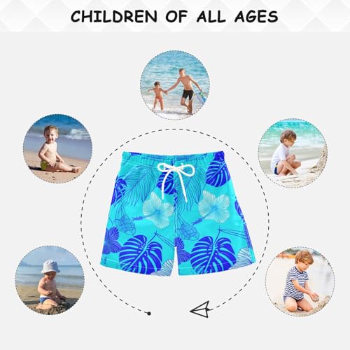 More information about DOMIKING Hibiscus Monstera Flowers Teal Toddler Boys' Swim Trunks Mesh Lining Swim Shorts for Kids Boys Adjustable Waist