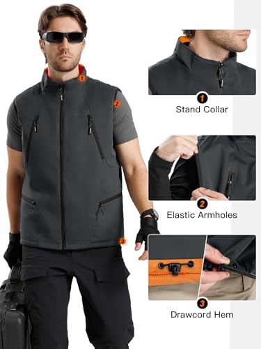 • 【Reversible Design】This fleece-lined softshell vest offers the versatility of two different looks in one, you can switch up your style effortlessly. We design the other side with black and orange color for your choice. If you are going out for some adventure activities, you can choose orange,high visibility safety vest, which can make you more noticeable when hunting or other occasions, so that you and your friends can be conspicuous and easily identified.