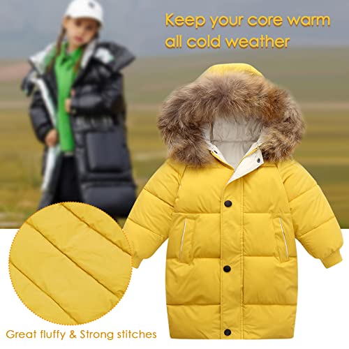 Happy Cherry Kids Boys Girls Fur Hooded Coat Zip Up Winter Warm Long Down Jacket Windproof Snowsuit Outerwear 2