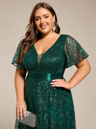 HOT ! Ever-Pretty Plus Women's V Neck Embroidered Sequin A Line Ruffles Sleeves Plus Size Evening Dresses Ball Gowns 02314-DA