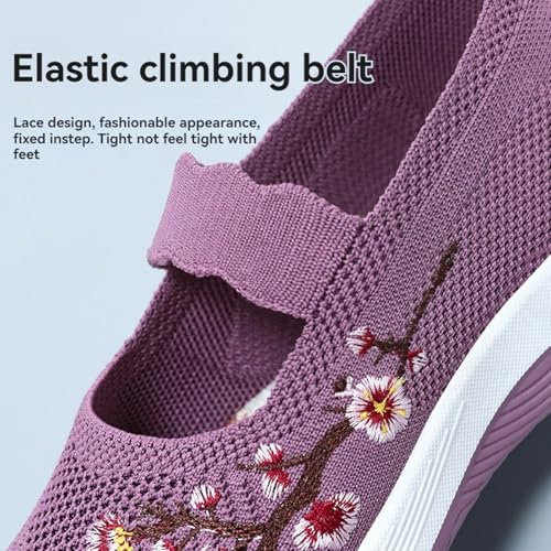 More information about Womens Embroidered Flower Shoes Slip On Knit Flat Loafers Woven Orthopedic Casual Breathable Soft Sole Sneakers Arch Support Stretch Mesh Platform Comfortable Walking Nurse Shoe