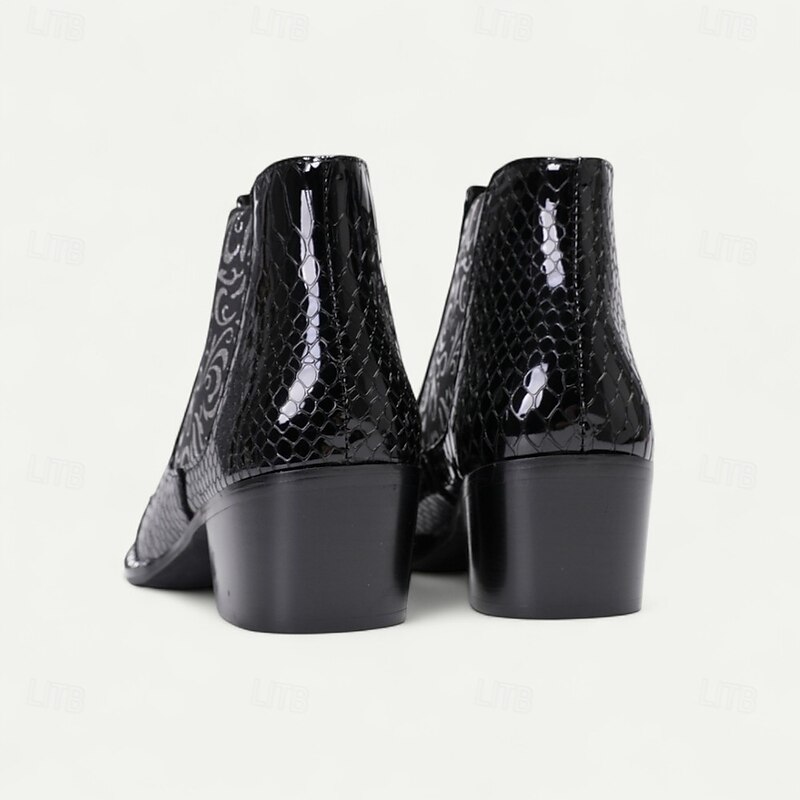 More information about Men's Black Patent Crocodile Pattern Boots – Embossed Floral Pointed Toe Dress Shoes for Stage Shows, Parties and Night Out
