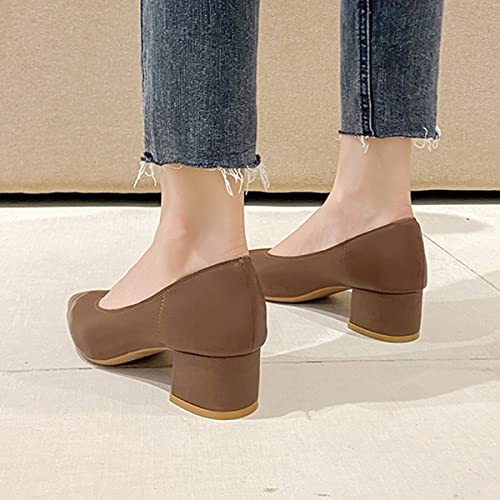 LUXINYU,Women Pointed Toe Heels Solid Elegant Bow Ladies Pumps Shallow Chunky Heeled Dress Shoes Comfort Work Shoes 6