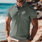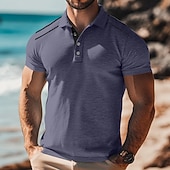 More information about Men's Polo Shirts Golf Shirt Casual Sports Classic Short Sleeve Fashion Cool Color Block Plain Buttons Summer Spring & Fall Regular Fit Black White Navy Blue Light Grey Green Khaki Polo Shirts