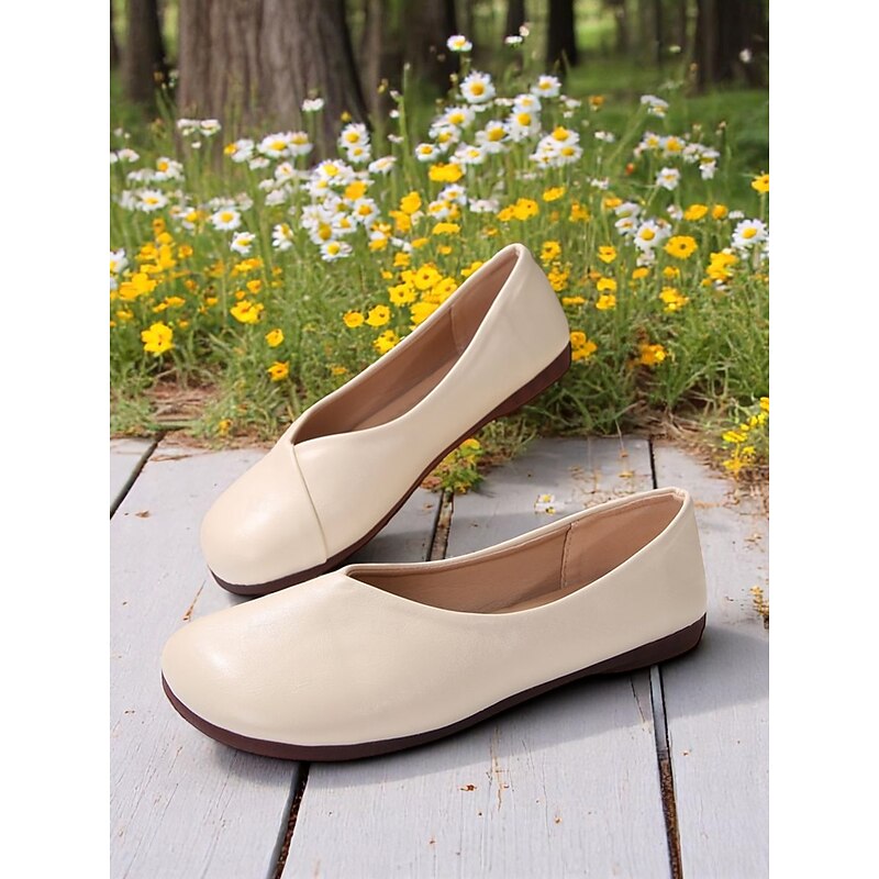 HOT ! Women's Beige Wide Toe Soft Sole Flats – Barefoot Comfort Shoes for Everyday Walking