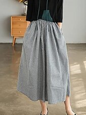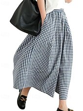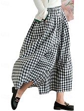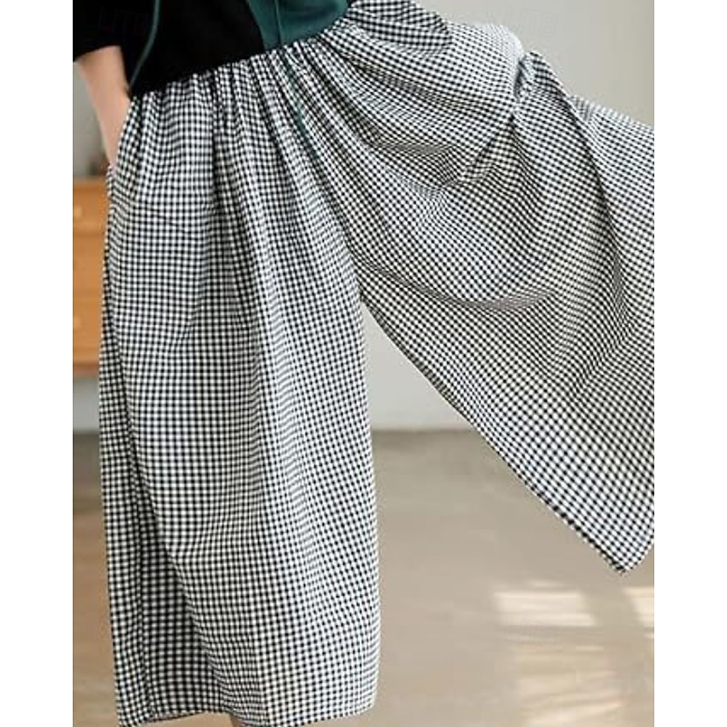 More information about Women's Wide Leg Slacks Streetwear Casual Full Length Natural Plaid Pocket Elastic Waist Comfy Outdoor Vacation Going out Black & White Black Red Dark navy Fall Regular Fit