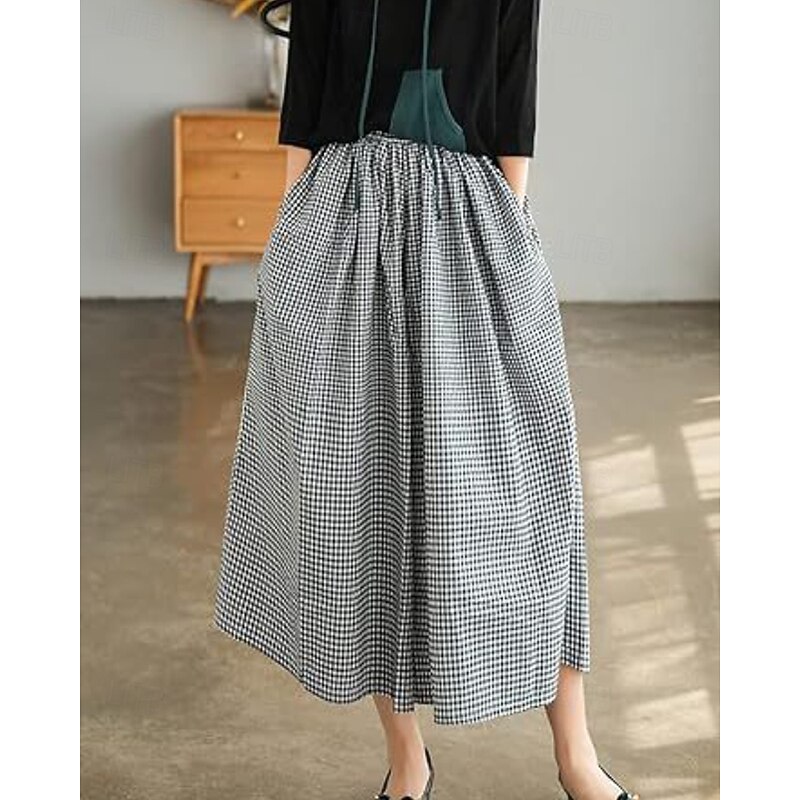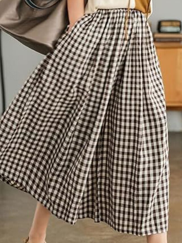Women's Wide Leg Slacks Streetwear Casual Full Length Natural Plaid Pocket Elastic Waist Comfy Outdoor Vacation Going out Black & White Black Red Dark navy Fall Regular Fit 13