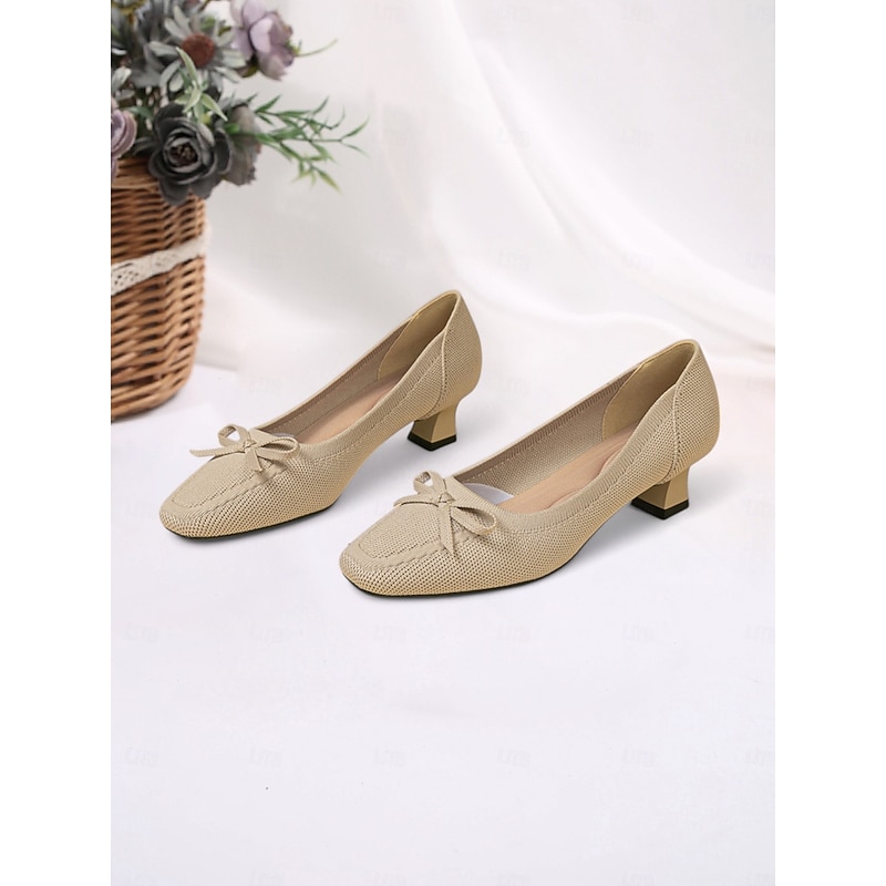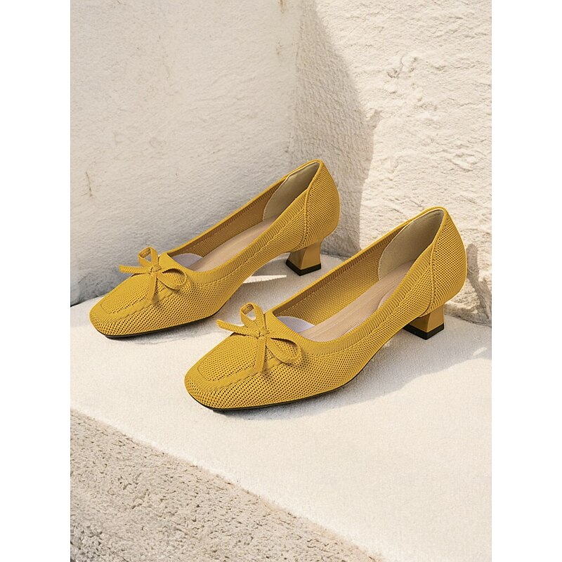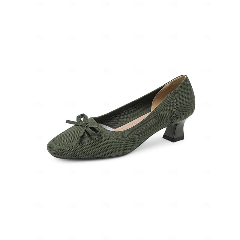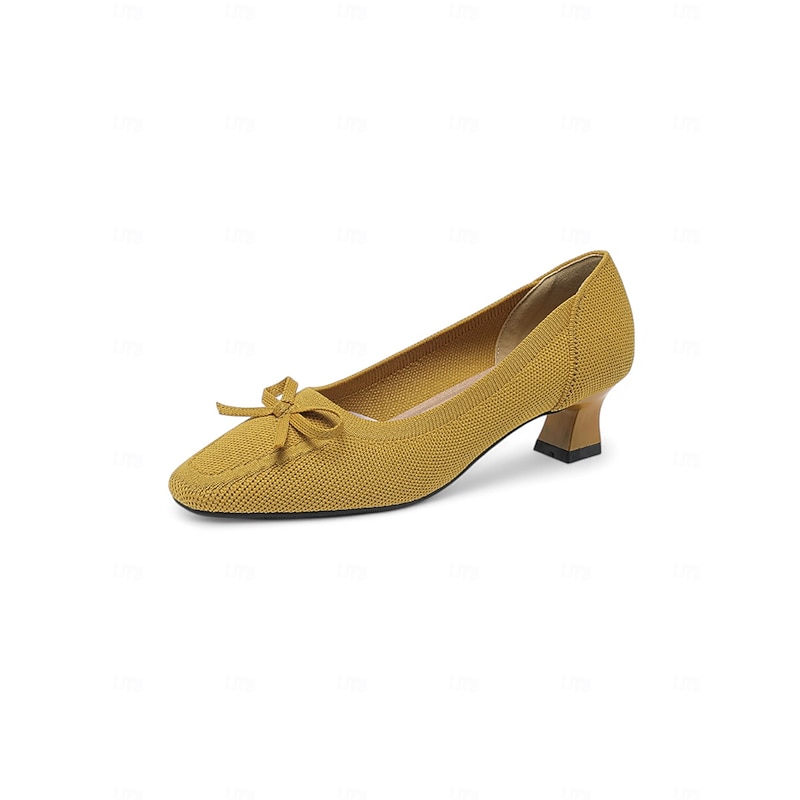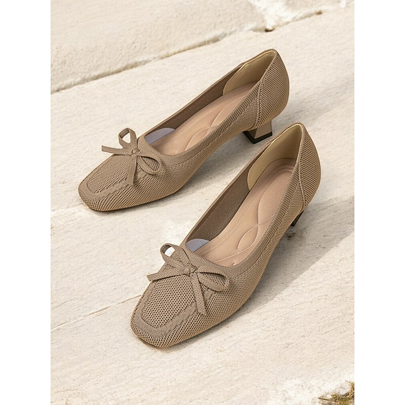 Women's Flyknit Low Heel Bowknot Pumps – Breathable Lightweight Comfort Shoes for Office, Work and Casual Wear 23