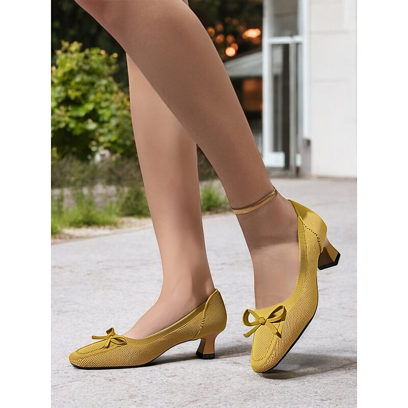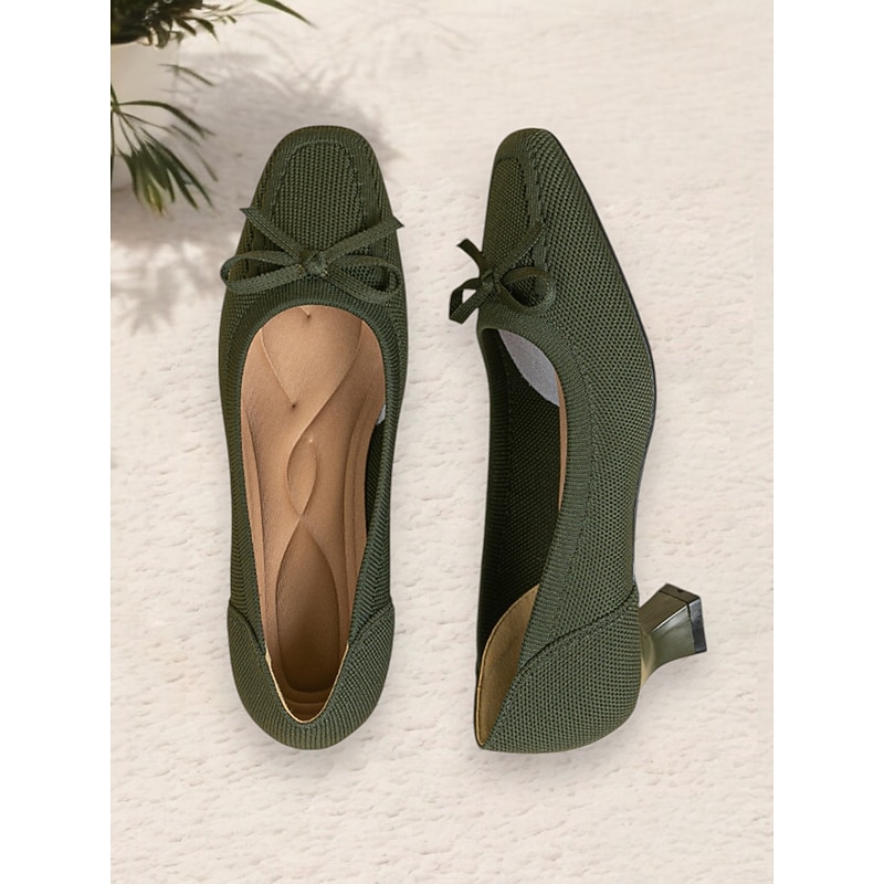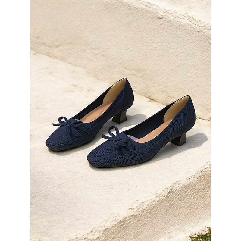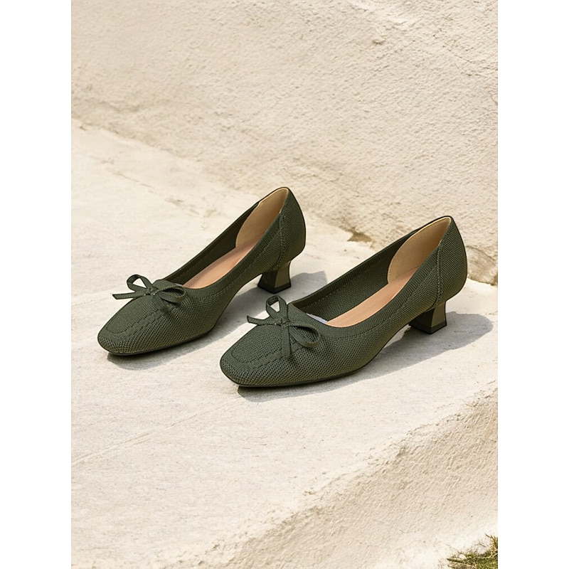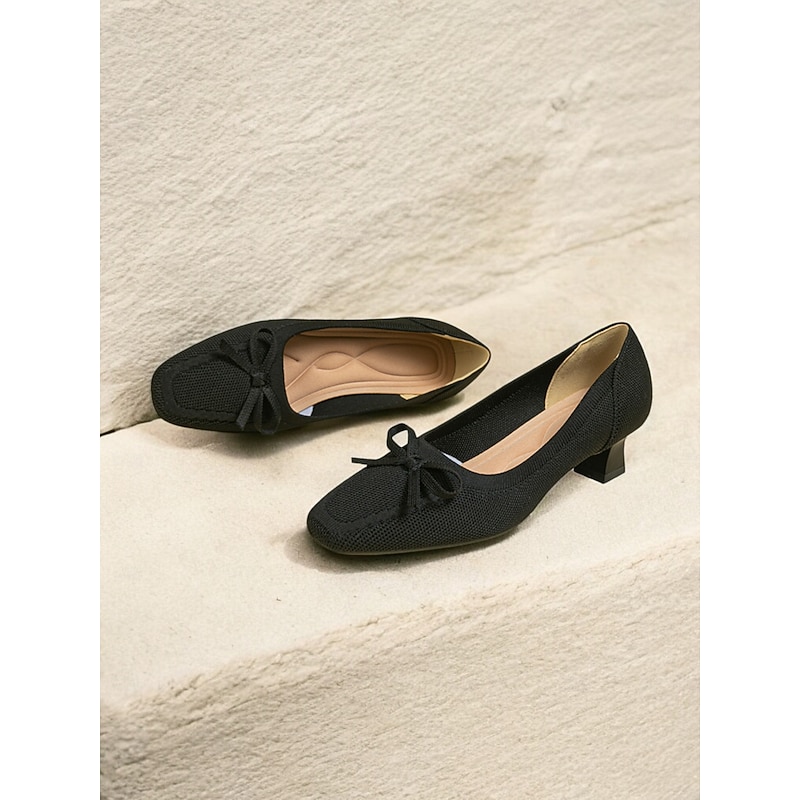 Women's Flyknit Low Heel Bowknot Pumps – Breathable Lightweight Comfort Shoes for Office, Work and Casual Wear 24