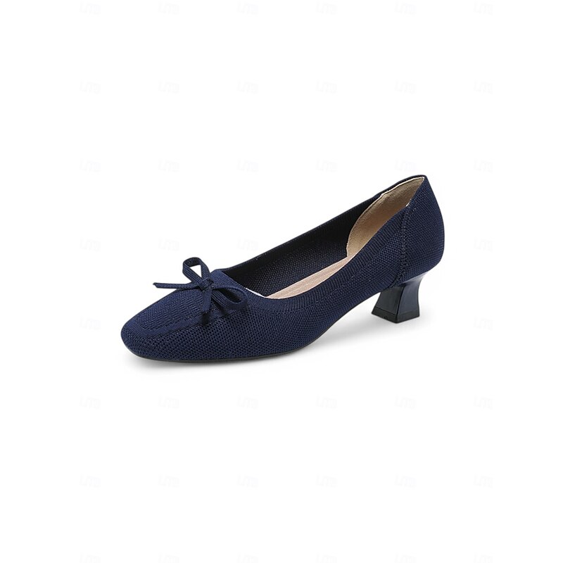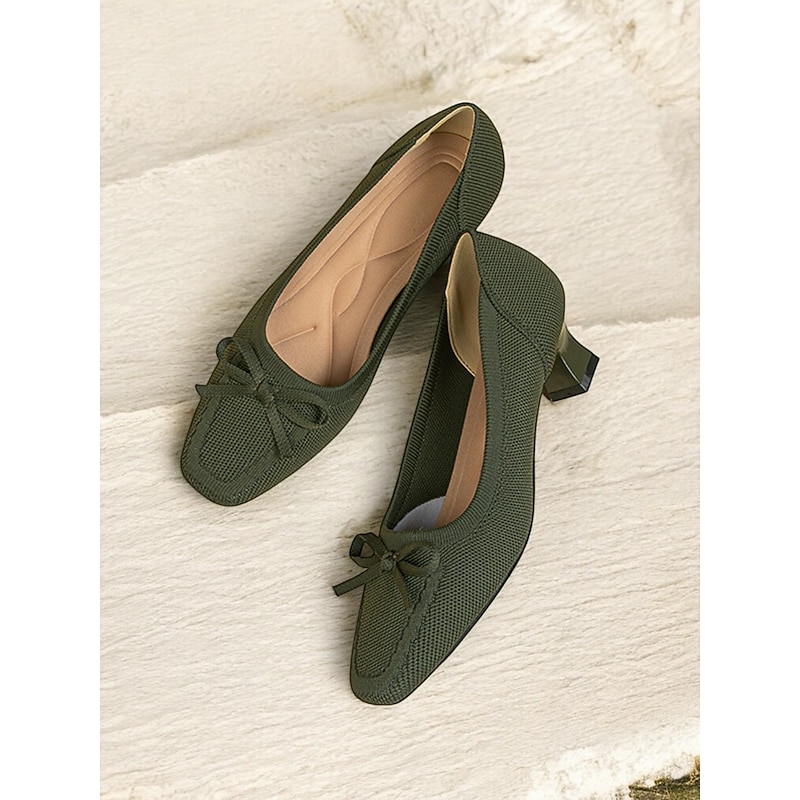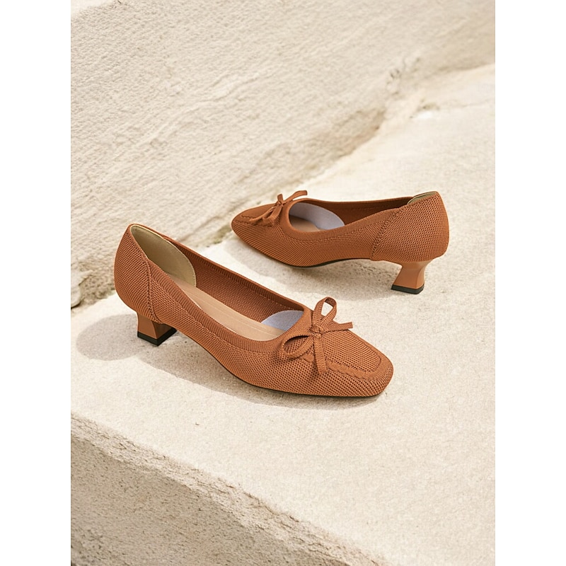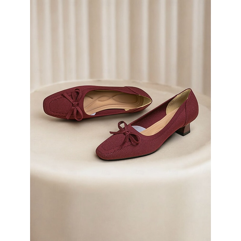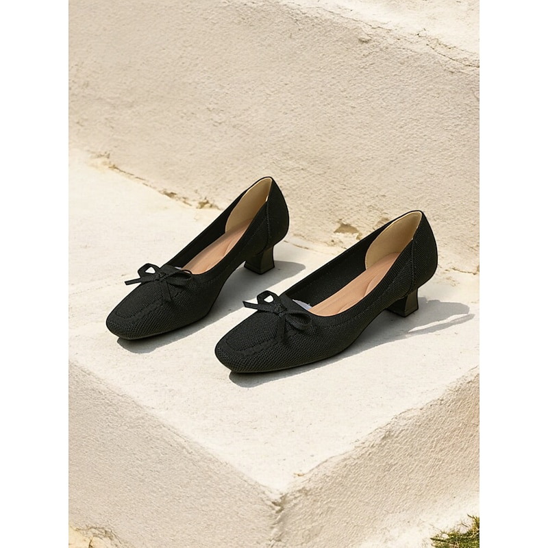 Women's Flyknit Low Heel Bowknot Pumps – Breathable Lightweight Comfort Shoes for Office, Work and Casual Wear 24