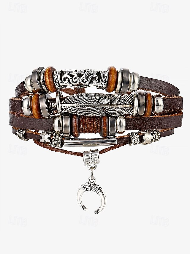 $11.99 - Men's Boho Multi-Layer Leather Bracelet with Feather and Crescent Moon Charm – Vintage-Inspired Adjustable Wrap Bracelet for Casual Style 2025. Shop for cheap Accessories For Men online? Buy at lightinthebox.com on sale today!