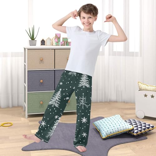 HOT ! ZZXXB Xmas Trees with Snow Boys Long Pants Soft Trousers Elastic Waist Kids Lounge Bottoms with Pockets S-XL