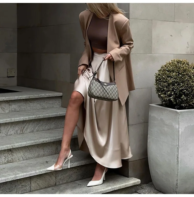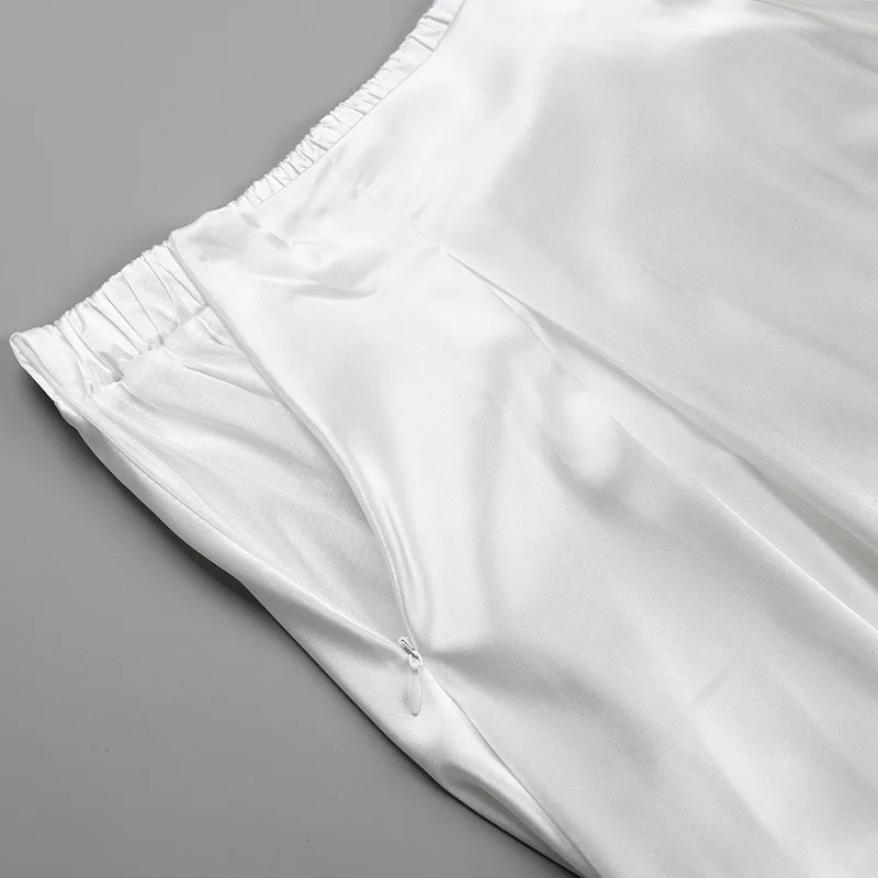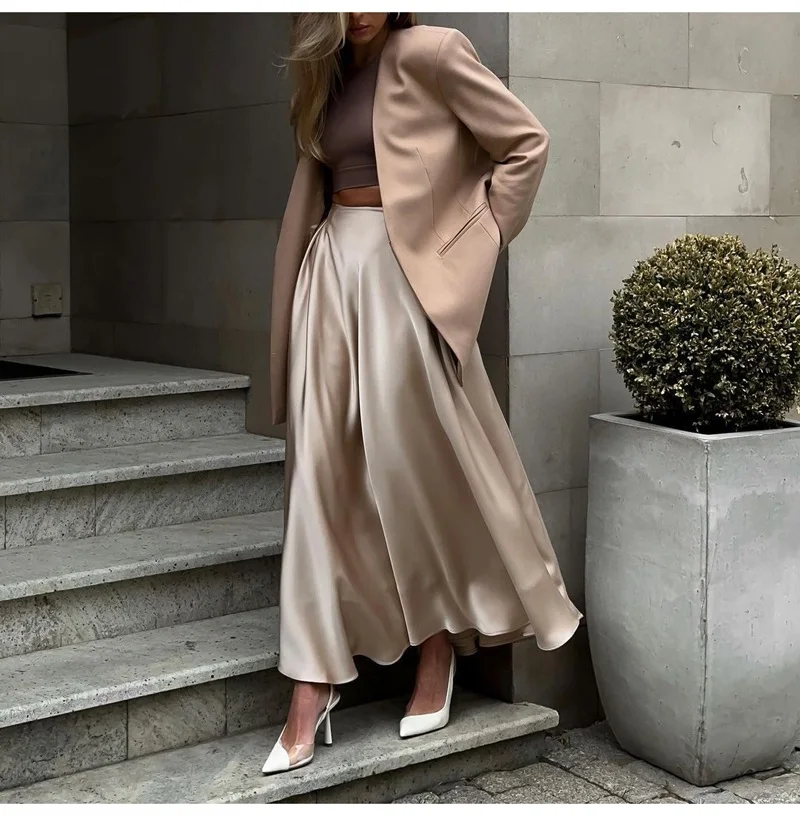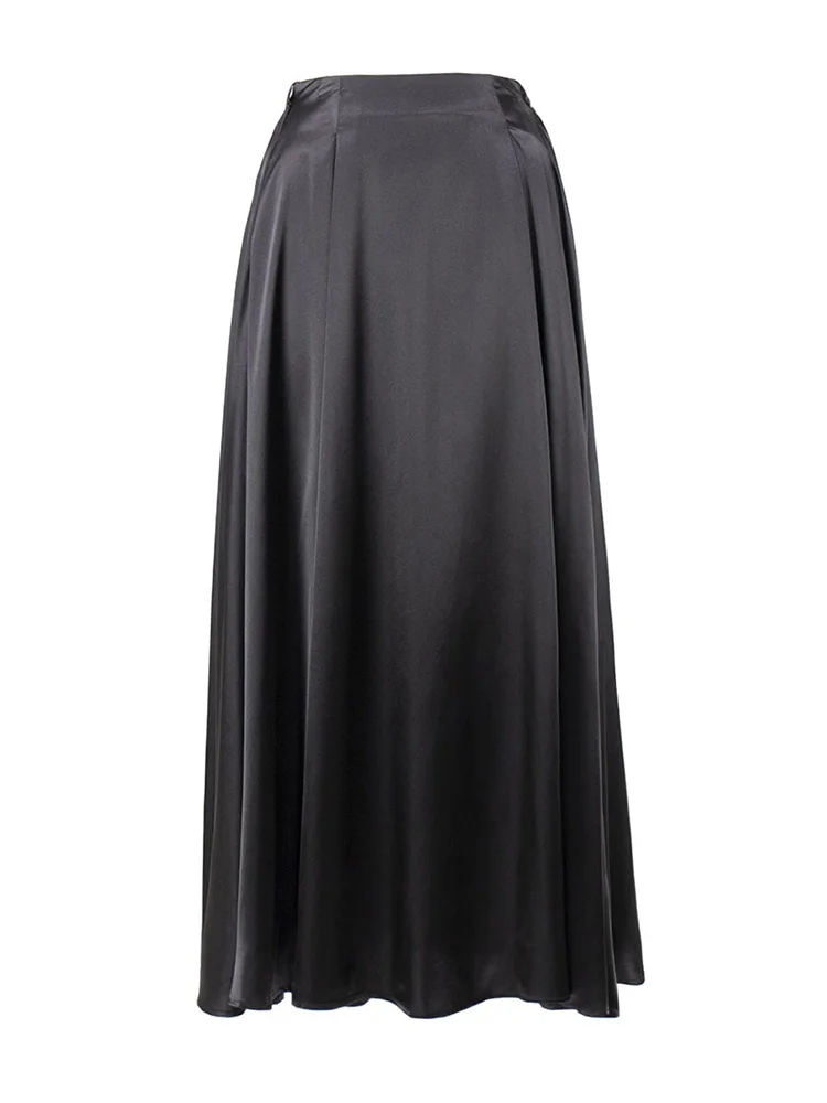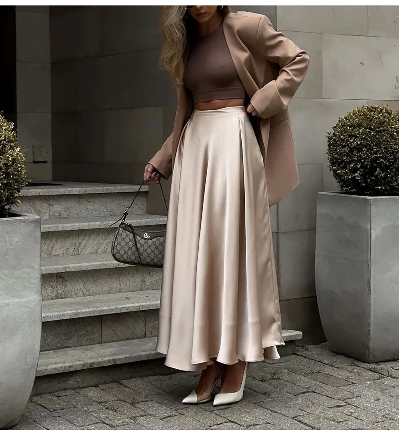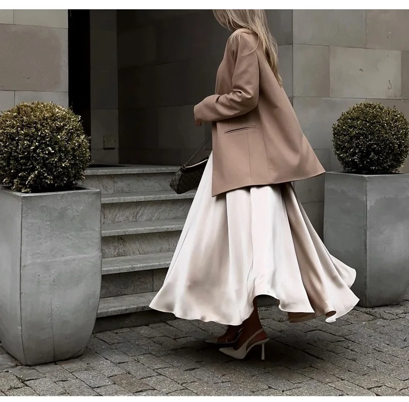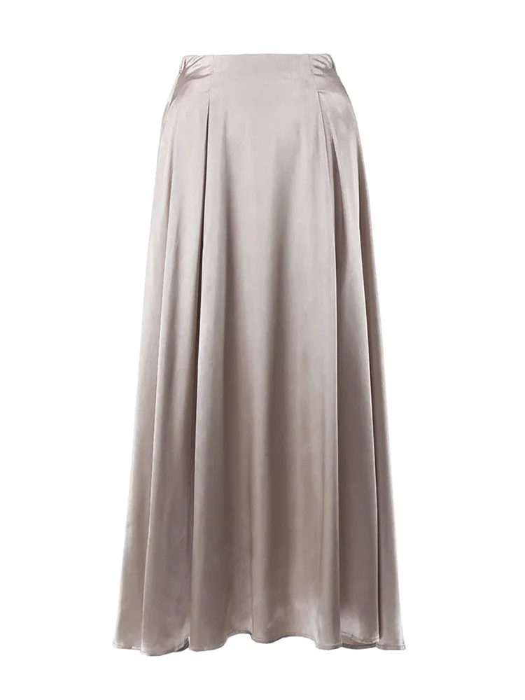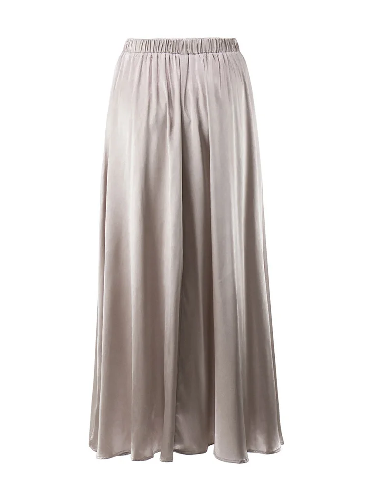 MiuKoMiYa Elegant Long Satin Skirts For Women High Waist A-line Solid Skirt Female Khaki Fashion Women Maxi White Silk Skirts