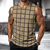 More information about Men's Vest Top Undershirt Sleeveless Shirt Sleeveless Crewneck Spring & Summer Plaid / Striped / Chevron / Round Fashion Designer Vacation Street Going out Black Brown Khaki Top Tee for Men