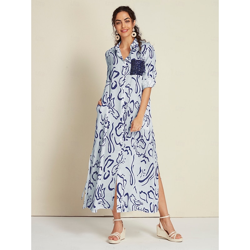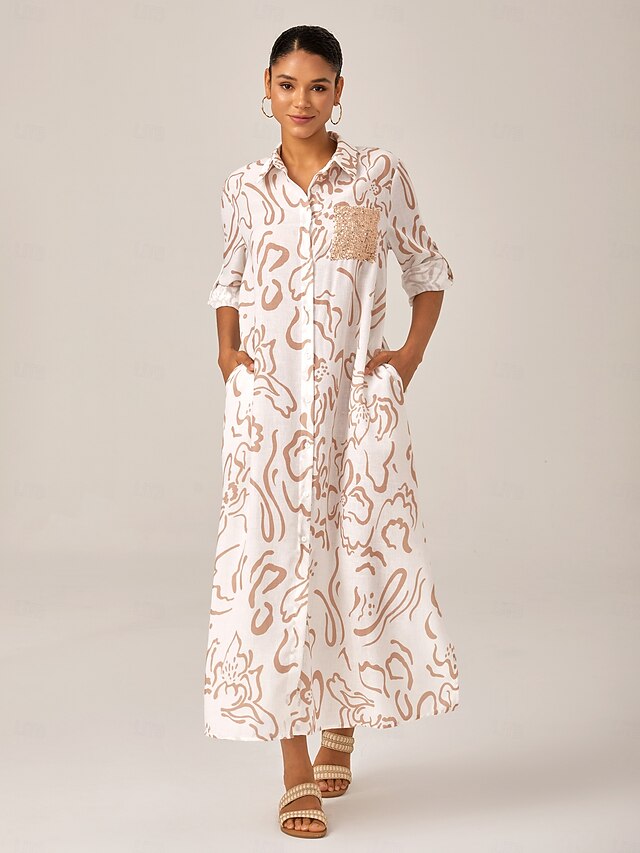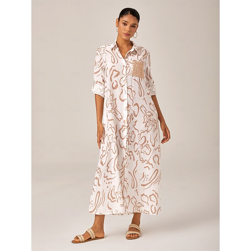 Highlights - Perfect for summer days - Made from lightweight and comfortable polyester fabric - Flattering maxi length - Designed as a stylish shirt dress with pockets - Features eye-catching sequin detail - Classic shirt collar neckline - A versatile maxi dress for women of all ages
