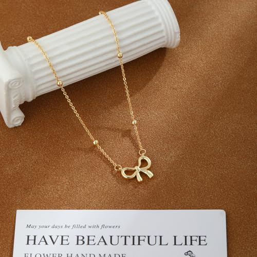 More information about Gold/Silver Bow Necklace Dainty 14K Gold Plated Tiny Bow Pendant Pearl Beads Chain Choker Necklaces Trendy Jewelry Gift