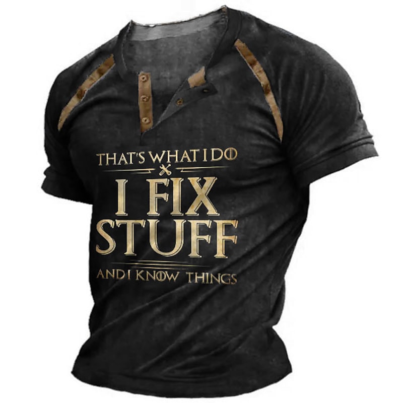 Men's Short Sleeve Graphic T-Shirt "I Fix Stuff & Know Things" Henley Tee - Hobbies Lifestyle Humor 6
