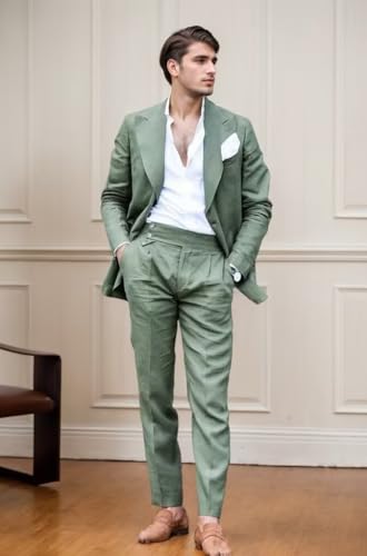 More information about Mens Linen Suit for Beach Wedding Double Breasted Prom Tuxedos 2 Piece Peak Lapel Blazer Pants for Summer
