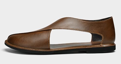 • [Men'S Casual Leather Sandals]: This Pair Of Closed-Toe Sandals Are Made Of Soft Cowhide, Which Has Good Ductility And Skin Compatibility. Offering Superior Flexibility And Breathability, The Cutout Construction Ensures Your Feet Stay Cool And Comfortable Even On The Hottest Days.