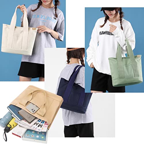 Crossbody Canvas Tote Satchel Bag for Women Shoulder Bag Multi-pockets Zipper Purse Handbag,Hobo Bag,Everyday Bag 4
