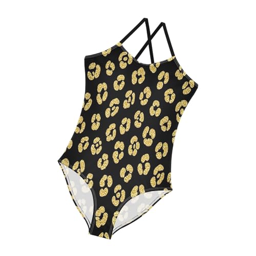 Little Girls Bathing Suits, Summer Beach Swim Suits Kids 3-10 Y, Gold Leopard Spots Black 1