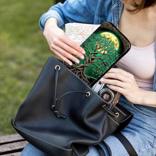 Womens Wallet, PU Leather RFID Cute Wristlet Wallets for Girls Women Ladies Purse Large Credit Card Clutch Purse Card Holder Coin Pocket Travel Wallets with Zipper, Tree Moon 3