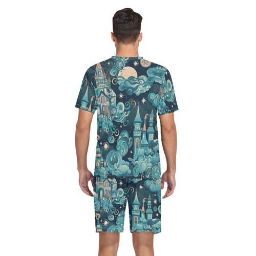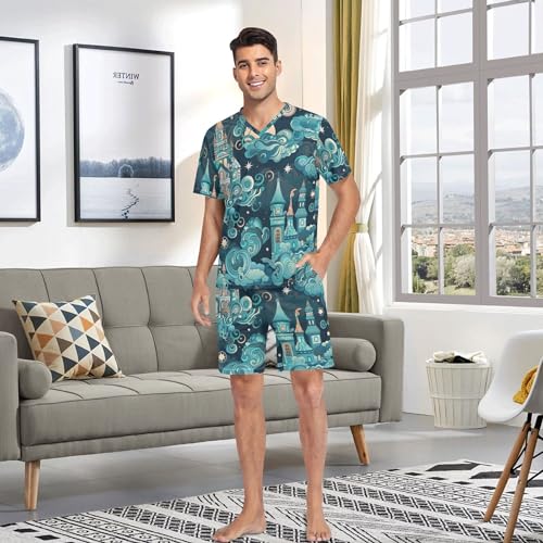 Magic Castle Night Sky Cloud Star Fairytale Pattern Men's Pajama Sets Sleepwear Short Sleeve Lounge Sets for Men S-2XL