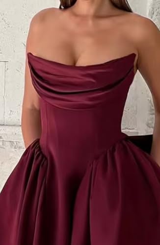 Strapless Satin Wedding Dresses for Bride Tea Length A Line Prom Dress for Women Pleated Formal Cocktail Party Gown 6