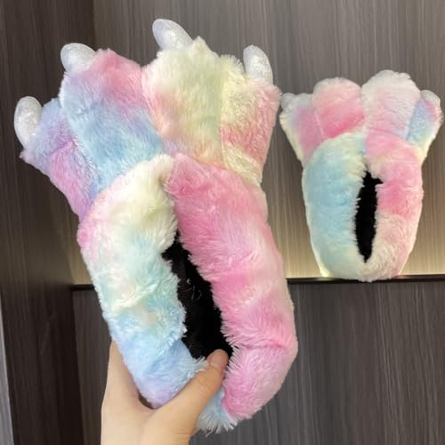 Pink Dinosaur Slippers For Women's Shoes Adult Monster Dino slippers Unisex Soft Plush Home Slippers Animal Costume Paw Claw Shoes Bear Claw Women Slippers 7