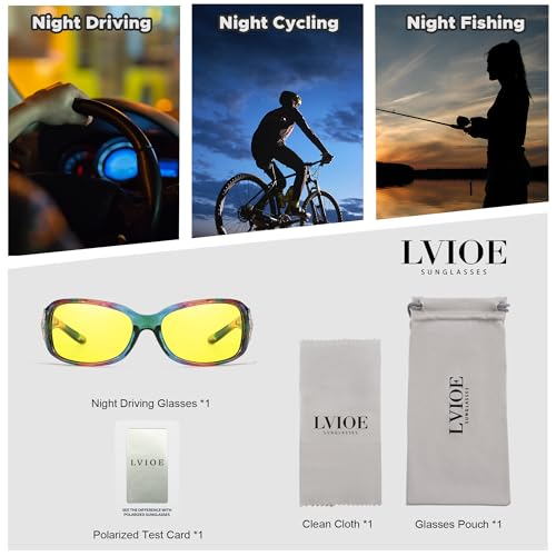 • 9 Layers Coating Lens: LVIOE night driving glasses are equipped with 9 layers coating lens. They can do a lot, including blocking glare, filtering harmful blue light, proving a 100% pretecion of UVA/UVB, increasing clarity, and optimizing night vision.