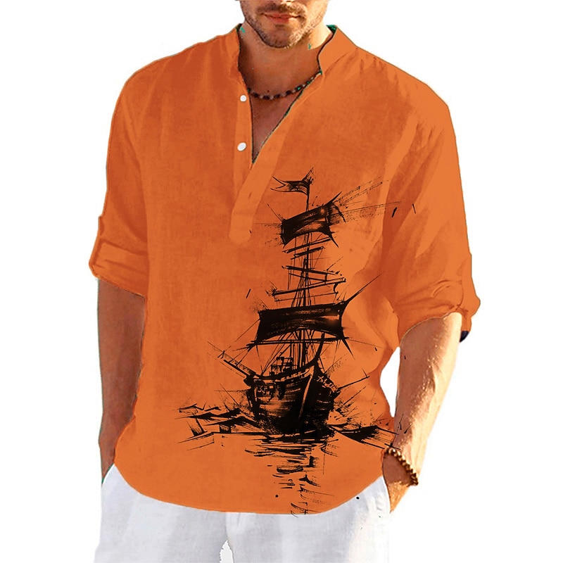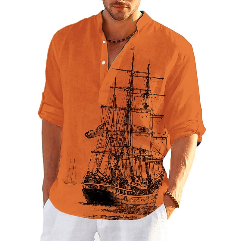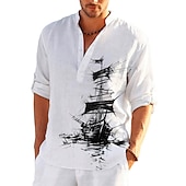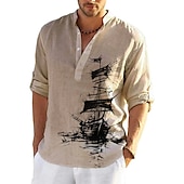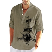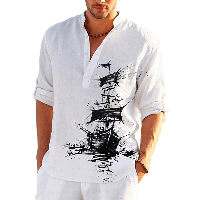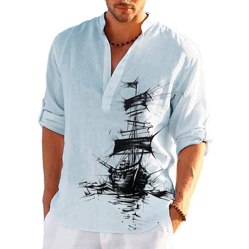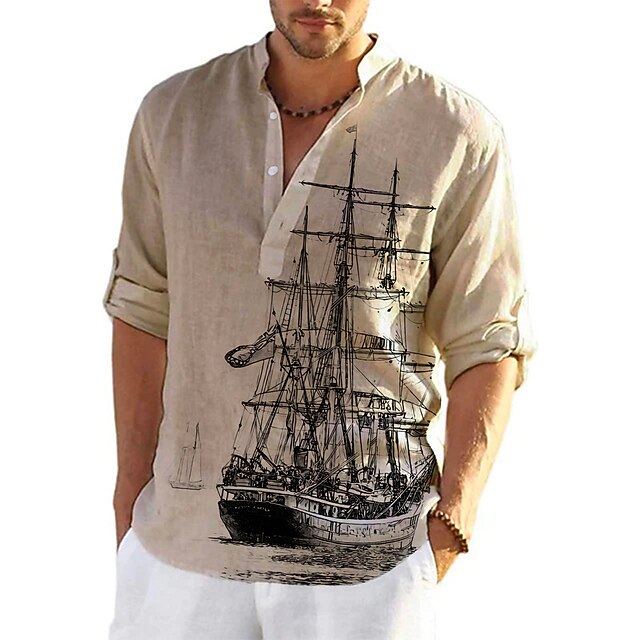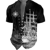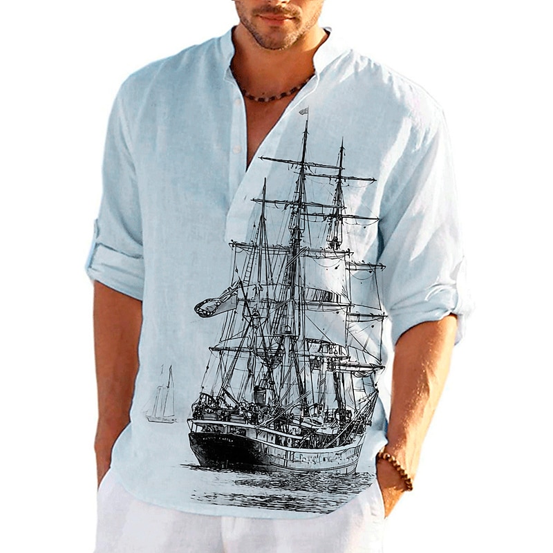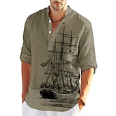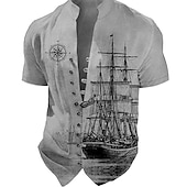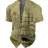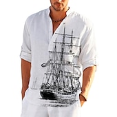More information about Men's Nautical Vintage Sailboat Shirt Button Up Shirt Long Sleeve Vintage Fashion Streetwear Daily Going out Summer Spring Fall Stand Collar Print Black-White Sea Blue Khaki+Khaki Black White