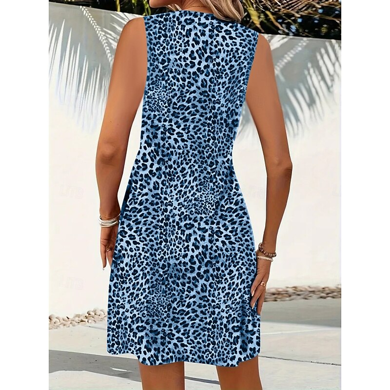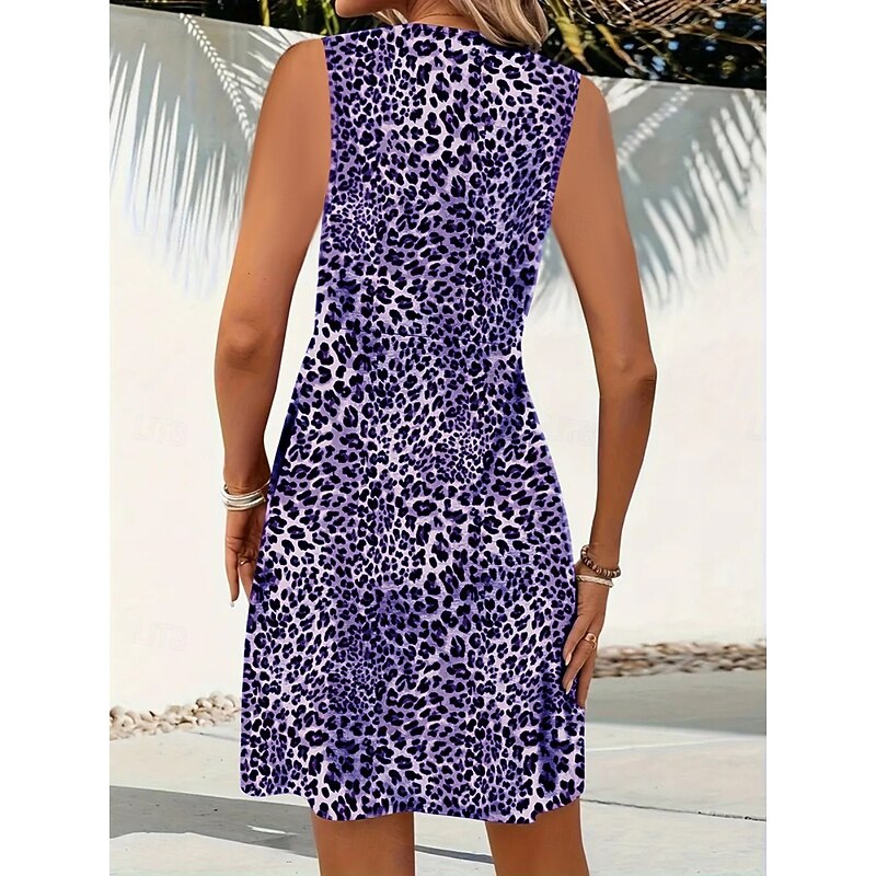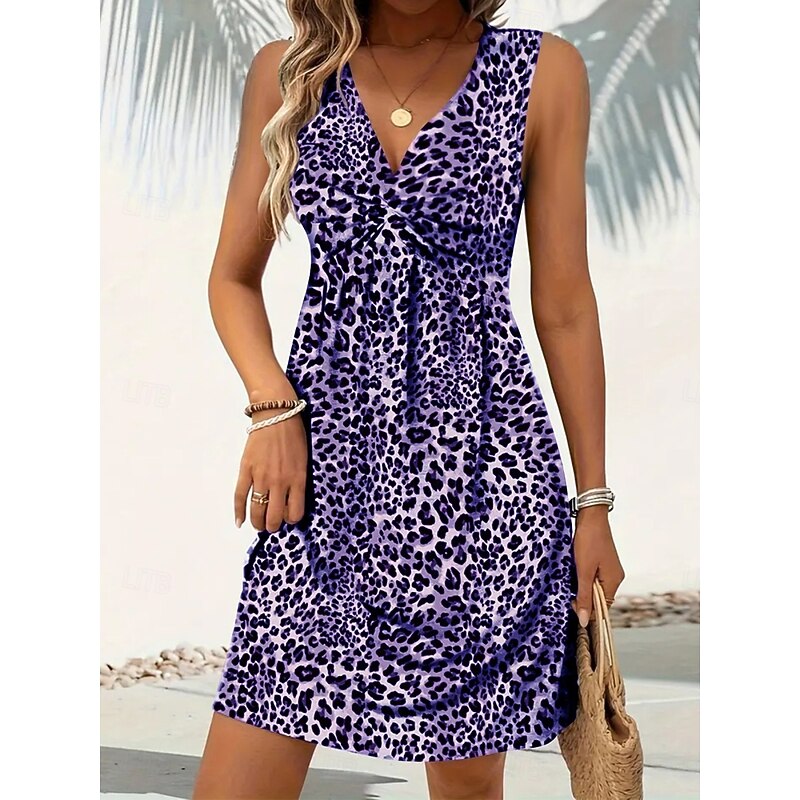 Women's Mini Dress A Line Dress Slip Dress Off The Shoulder Dress Casual Outdoor Going out Standard Fit Leopard Sleeveless V Neck Black Wine Blue Purple Summer 2