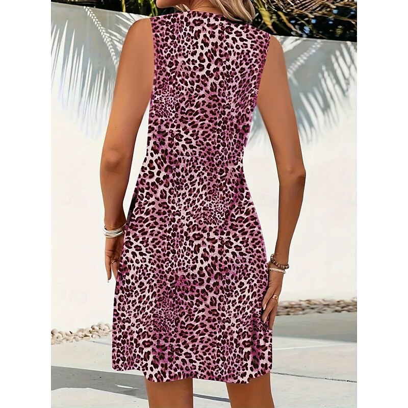 Women's Mini Dress A Line Dress Slip Dress Off The Shoulder Dress Casual Outdoor Going out Standard Fit Leopard Sleeveless V Neck Black Wine Blue Purple Summer 4