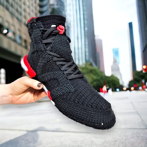 More information about Custom Air Sneakers 6 Black Infrared Crochet Sneakers Slippers - Handmade Basketball Sneaker Style Knitted Booties, Personalized Funny Lightweight Cozy Shoes, Streetwear Hip Hop Style Comfort Shoes