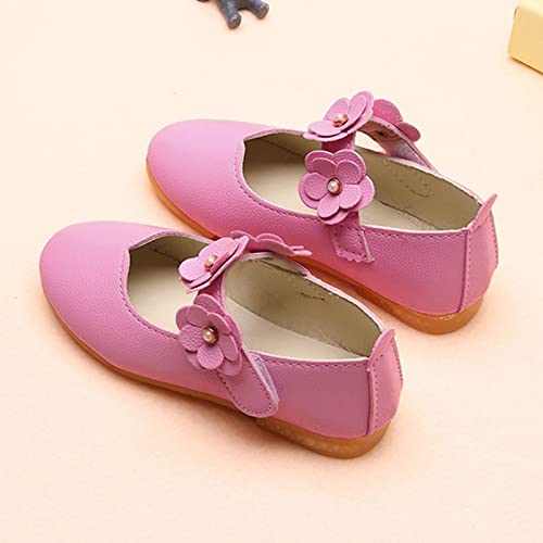 Kids Girls Mary Jane Ballerina Flats Toddler Bridesmaid Non-Slip Soft Slip On Flat Dress Shoes with Flower Strap 6