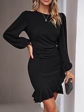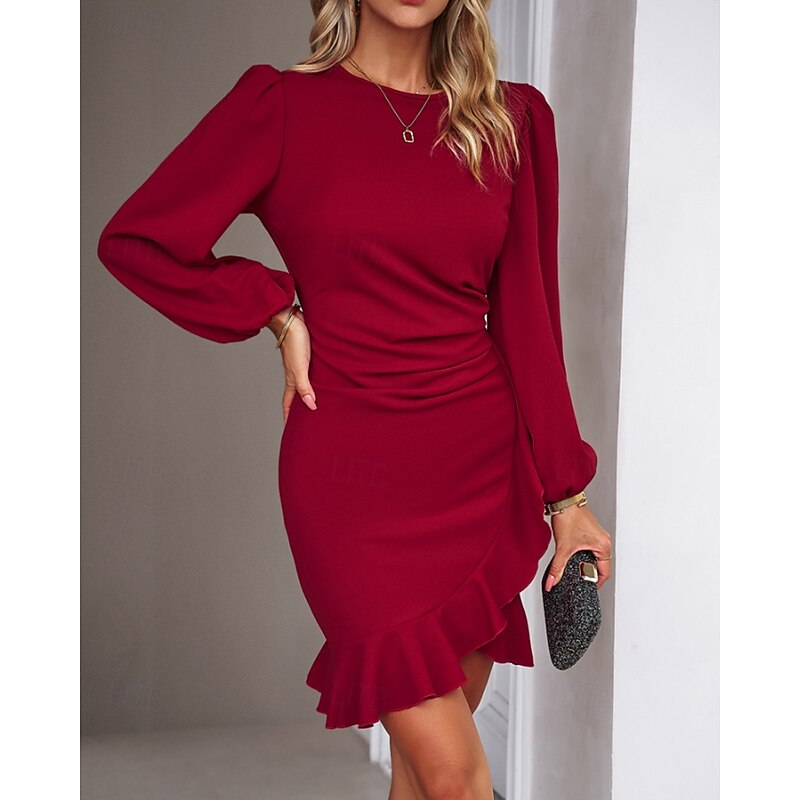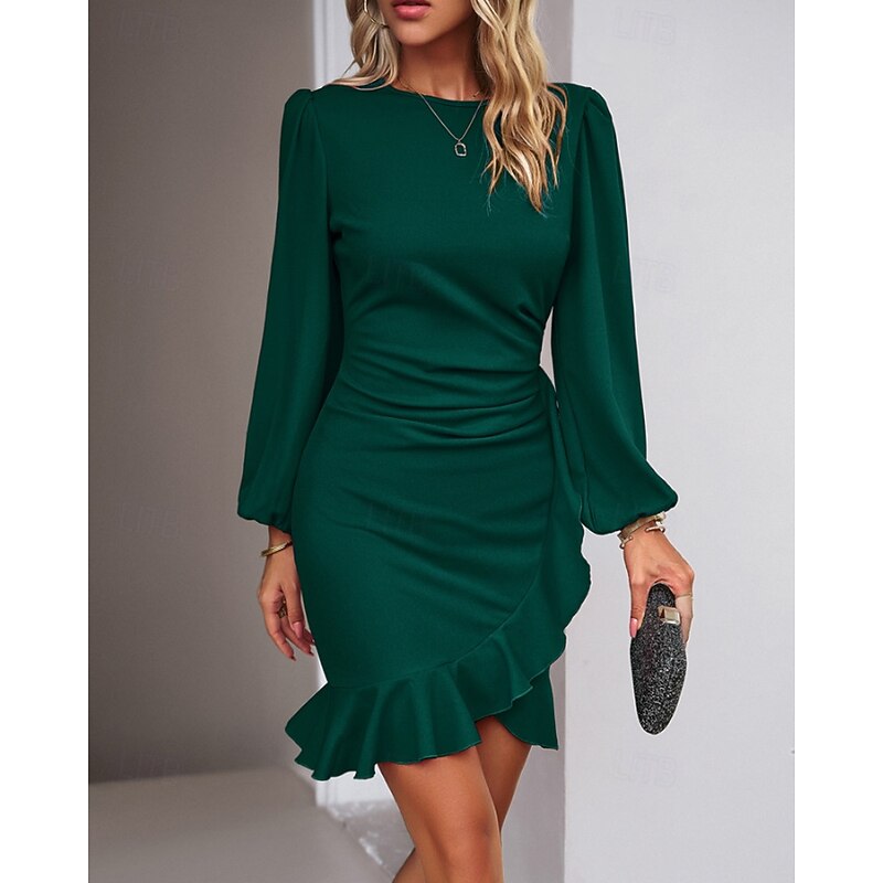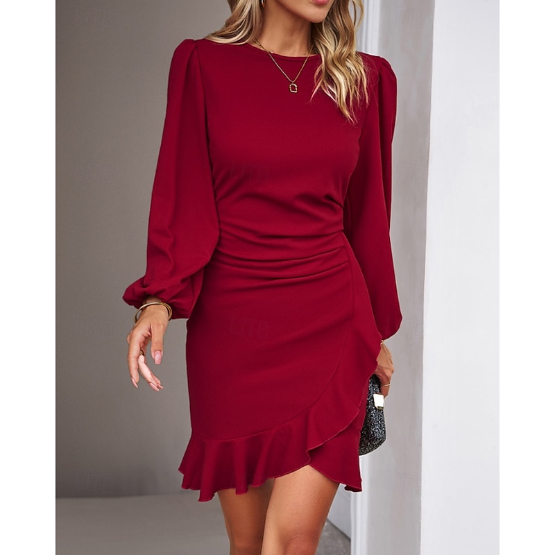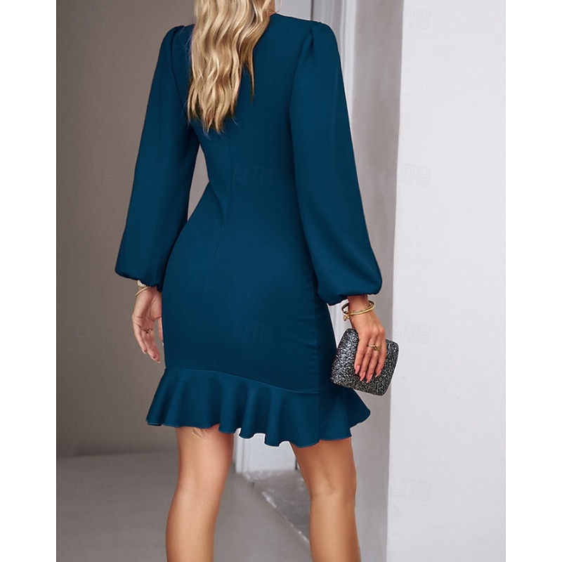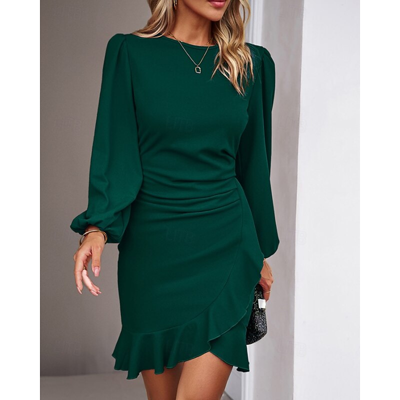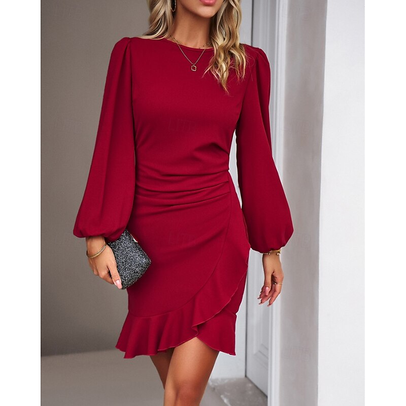 More information about Women's Mini Dress Party Dress Satin Dress Sheath Dress Elegant Modern Puff Sleeve Party Evening Party Cocktail Party Regular Fit Plain Long Sleeve Crew Neck Black Wine Navy Blue Dark Green Fall