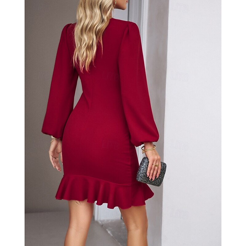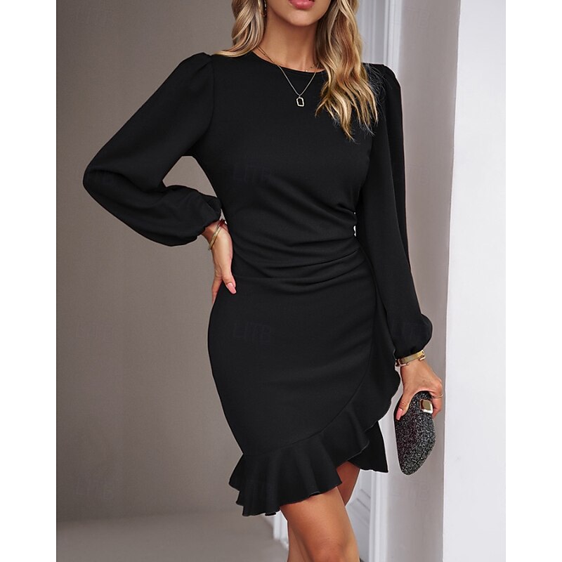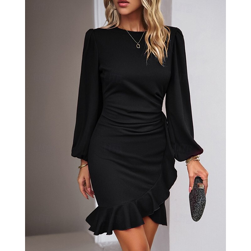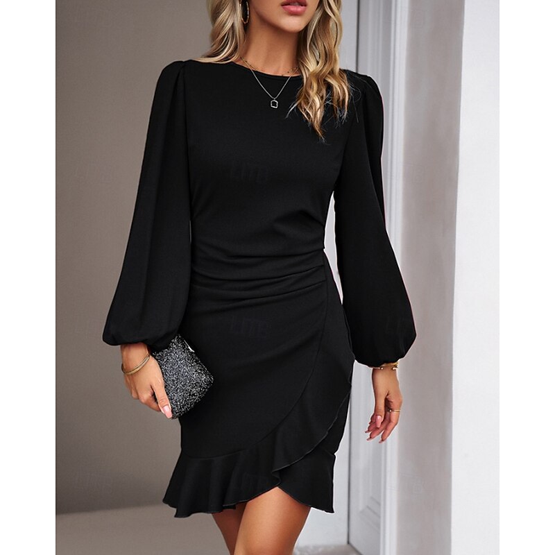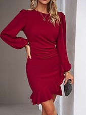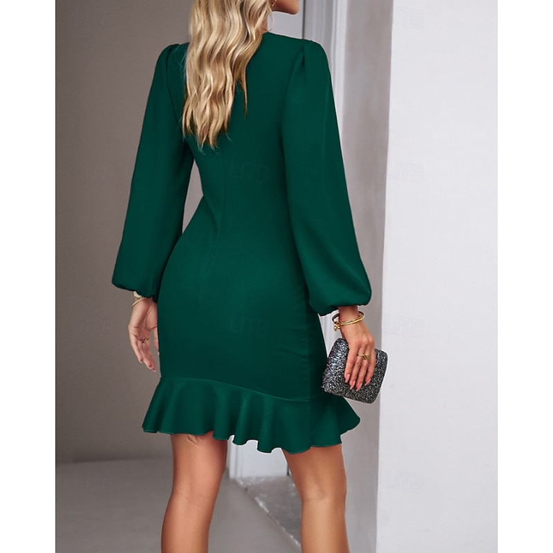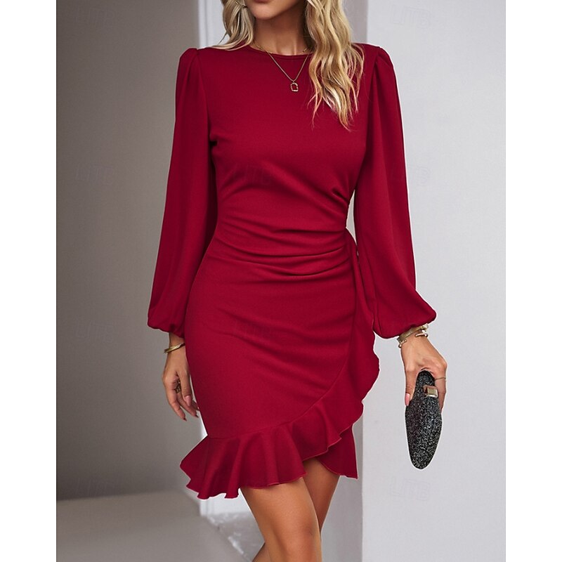 More information about Women's Mini Dress Party Dress Satin Dress Sheath Dress Elegant Modern Puff Sleeve Party Evening Party Cocktail Party Regular Fit Plain Long Sleeve Crew Neck Black Wine Navy Blue Dark Green Fall