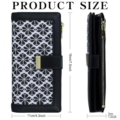 HOT ! Black RFID Blocking Wallet for Women Long Leather Coin Purse with Flower Design Minimalist Credit Card Holder and ID Window Cute Travel Cash Wallet for Women